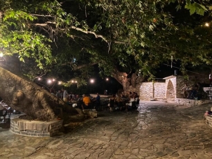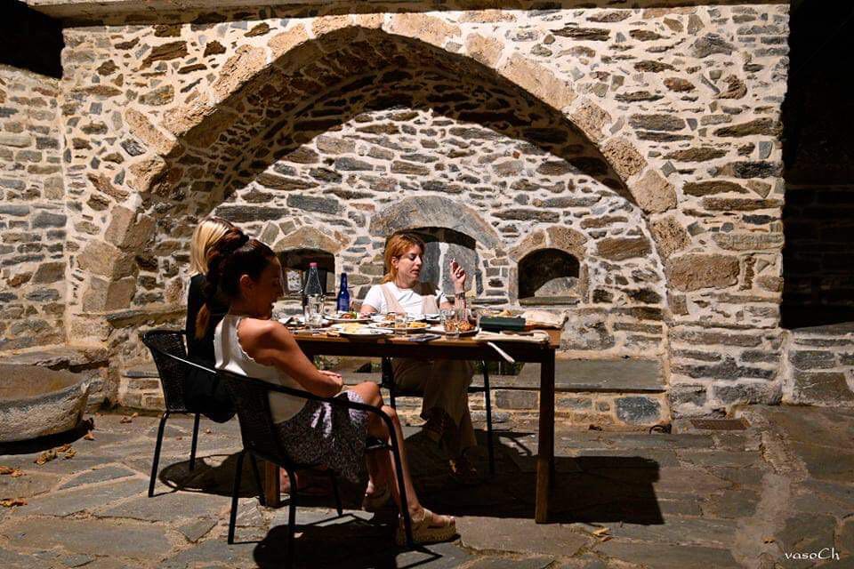 Οι αρχαίοι Έλληνες πίστευαν ότι τραπέζι χωρίς συζήτηση δεν διαφέρει από τη φάτνη και φάτνη είναι το παχνί που τρώνε τα ζώα.Η λέξη συμπόσιο είναι σύνθετη από την πρόθεση << συν >> ( = μαζί ) και το ουσιαστικό << πόσις >> ( εκ του πίνω ).Συνεπώς συμπόσιο σημαίνει να πίνουμε μαζί.Οι πρόγονοί μας έδιναν μεγάλη σημασία σ΄ αυτή την εκδήλωση.Υπήρχαν συγκεκριμένοι κανονισμοί που ακολουθούνταν κατά τη διάρκεια του συμποσίου και τους οποίους έπρεπε να τηρήσει αυτός που συμμετείχε σ΄αυτό.Φρόντιζαν μάλιστα ο αριθμός των παρευρισκομένων να είναι μονός , ώστε σε περίπτωση διαφωνίας στο θέμα που θα συζητούσαν να μην προέκυπτε ισοψηφία .Το συμπόσιο άρχιζε νωρίς το βράδυ και συνεχιζόταν πολλές φορές μέχρι τις πρωινές ώρες. Οι συνδαιτυμόνες κάθονταν κατά τέτοιο τρόπο ώστε να έχουν την δυνατότητα να συνομιλούν μεταξύ τους.Οι πρόγονοί μας ποτέ δεν έπιναν κρασί κατά την διάρκεια του φαγητού.Άρχιζαν με το πρόπωμα , κρασί με μέλι , που ήταν << άκρατο >> και ακολουθούσε το σερβίρισμα των πιάτων με συγκεκριμένη σειρά.Πλούσια τα φαγητά , μεγάλη ποικιλία , διάφορες γεύσεις .Όταν ολοκλήρωναν το δείπνο έπλεναν τα χέρια τους , όπως και στην αρχή στα χερόνιπτρα και στη συνέχεια ξεκινούσε η οινοποσία.Οριζόταν και ένας αρχισυμποσιάρχης ο οποίος καθόριζε το πόσο θα έπιναν οι συνδαιτυμόνες . Το κυριότερο όμως και το σπουδαιότερο μέρος του συμποσίου ήταν η συζήτηση.Ο καθένας , με τη σειρά του και με τάξη , ανελάμβανε να μιλήσει για το συγκεκριμένο θέμα της συζητήσεως.Το θέμα συνήθως ήταν επίκαιρο και ο καθένας έπρεπε να μιλήσει με αυτοσχέδιο τρόπο , να αναπτύξει δηλαδή τις σκέψεις του με πρωτότυπο τρόπο.Τα αποτελέσματα της συζήτησης , συνήθως , η άρχουσα τάξη τα ελάμβανε υπ΄ όψη της για τις περαιτέρω αποφάσεις της και ενέργειές της .Για το λόγο αυτό, με σεβασμό στο γύρω περιβάλλον, χτίσαμε με πολύ μεράκι, στα πλατάνια της Μεγάλης Βρύσης στα Στύρα, ένα μέρος για ποιοτικό φαγητό, καλή παρέα, συζήτηση, άψογο service, παραδοσιακά ακούσματα και προπάντων το αποτέλεσμα της βραδιάς να ευφραίνει καρδίαν.