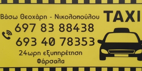 customer tabsΕπικοινωνίαΤο TAXI ΒΑΣΩ ΘΕΟΧΑΡΗ-ΝΙΚΟΛΟΠΟΥΛΟΥ δημιουργεί νέες κατευθύνσεις στο χώρο του μεταφορικού έργου, διασφαλίζοντας την άμεση εξυπηρέτησή σας από επαγγελματίες οδηγούς. Οι υπηρεσίες μας παρέχονται με όποιον τρόπο κι αν φτάσετε στην πόλη μας (τρένο ή ΚΤΕΛ ) καθώς μπορούμε να σας παραλάβουμε και από οποιοδήποτε αεροδρόμιο ή λιμάνι επιθυμείτε εκτός της πόλης μας με τελικό προορισμό την πόλη μας. Αναλαμβάνουμε τη μεταφορά σας στα πιο αξιόλογα σημεία ενδιαφέροντος και αξιοθέατα καθώς και τις ημερήσιες αποδράσεις στις γύρω περιοχές όπως Όλυμπος, Μετέωρα, Πήλιο ή όπου αλλού εσείς επιθυμείτε. Για την καλύτερη εξυπηρέτησή σας διαθέτουμε ταξί PASSAT πολυτελείας με όλες τις ανέσεις που θα κάνει τη μεταφορά σας αλλά και την εκδρομή σας μία ευχάριστη υπόθεση. Σε περίπτωση που μεταφέρετε παιδιά μικρής ηλικίας, μπορείτε να μας ενημερώσετε ώστε να έχουμε εξοπλίσει τΟ ΤΑΞΙ με τα ανάλογα παιδικά καθίσματα καθώς εξοπλίζονται με καθίσματα τύπου isofix. Δεν χρειάζεται η χρήση πιστωτικής κάρτας για την κράτηση της παραγγελίας σας απλά συμπληρώνετε τη φόρμα κράτησης και πληρώνετε αφού φτάσετε στον τελικό προορισμό σας με μετρητά στον οδηγό.Ταξί - TaxiΤουρισμός Καραϊσκάκη 40 Φάρσαλα 403 00ΦΑΡΣΑΛΑ ΛΑΡΙΣΑΣΛΑΡΙΣΑΘΕΣΣΑΛΙΑ 2491024811 6978388438 6934078353vasw911@yahoo.grspyros4464@gmail.com Το προτείνω (έχει προταθεί 0 φορές) ΦωτογραφίεςFacebook LikeShare on FacebookTweet Widget