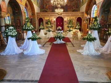 Στολίζουμε εσωτερικά, Ιερούς Ναούς, Εκκλησίες, αίθουσες, με πλούσιες ανθοσυνθέσεις και κασπώ, σε πληθώρα σχεδίων και ποσοτήτων, σύμφωνα με το δικό σας γούστο.