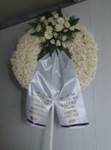Κατασκευάζουμε στεφάνια και καρδιές με άνθη ή ανθοσυνθέσεις, στο μέγεθος και στον τύπο που θέλετε, με κείμενο δικής σας επιλογής στις κοερδέλες. Τα αποστέλλουμε περίπου μια ώρα νωρίτερα από την κηδεία, στον Ιερό Ναό, στο Κοιμητήριο, ή σε οποιαδήποτε Εκκλησία επιθυμείτε.