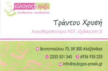 customer tabsΕπικοινωνίαΥπηρεσίες:Μαθησιακές δυσκολίεςΔυσλεξίαΣύνδρομαΤραυλισμόςΚαθυστέρηση λόγουΑυτισμόςΣυμβουλευτική Γονέων, Παίδων, ΕνηλίκωνΑναπτυξιακή διαταραχή Λογοπεδικοί - ΛογοθεραπευτέςΥπηρεσίεςΥγείαΒετσοπούλου 70, Αλεξάνδρεια, ΗμαθίαΑΛΕΞΑΝΔΡΕΙΑ ΗΜΑΘΙΑΣΗΜΑΘΙΑΜΑΚΕΔΟΝΙΑ 2333501545 6936935233info@eulogos-praxis.grwww.eulogos-praxis.gr Το προτείνω (έχει προταθεί 1 φορές) ΦωτογραφίεςFacebook LikeShare on FacebookTweet Widget