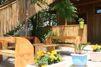 The beautiful courtyard and the shaded gazebo equipped with handmade wooden furniture and colorful flowers, offer guests beautiful moments of relaxation and freshness.