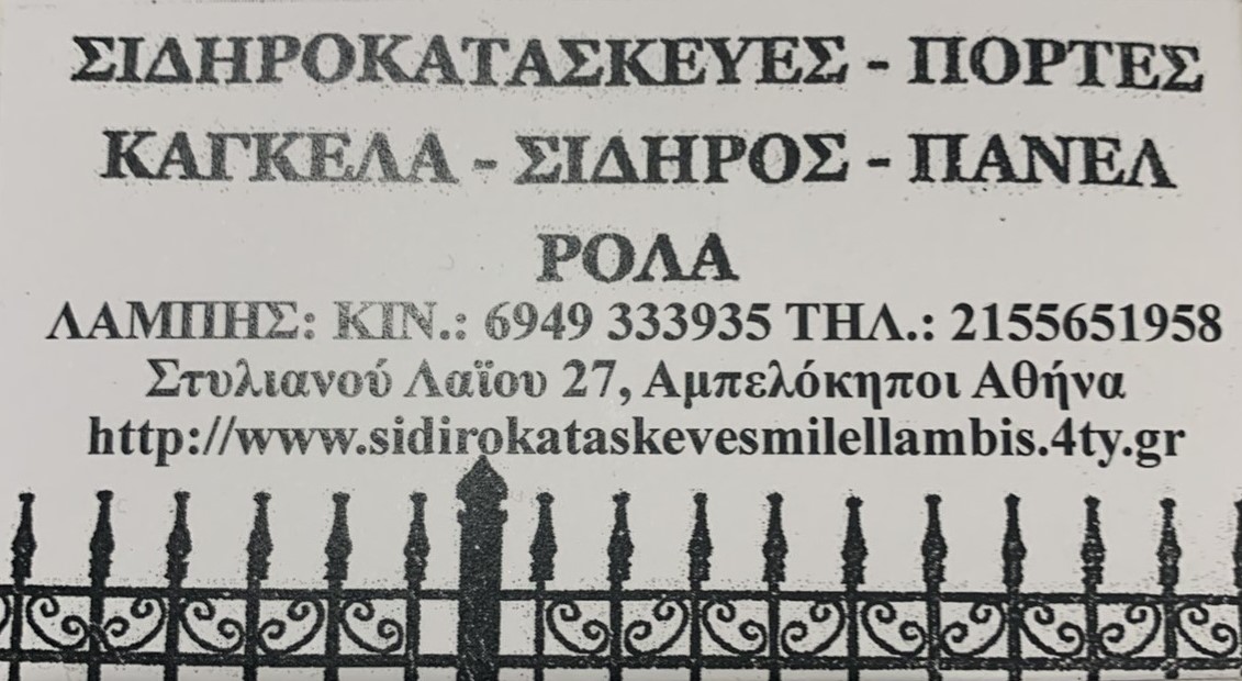 customer tabsΕπικοινωνίαΜεταλλικές κατασκευέςΕξυπηρέτηση σε όλο το νομο Αττικής και ΠανελλαδικάΚάγκελα, υπόστεγα, πάνελ, σκάλες, κάγκελα Inox, πόρτες, γκαραζόπορτες, ρολά, plasma κοπήςΣιδηροκατασκευέςΚατασκευές ΑλουμινίουΔόμηση - ΚατοικίαΣτυλιανού Λαΐου 27, Αθήνα 115 24ΑΜΠΕΛΟΚΗΠΟΙ ΑΤΤΙΚΗΣΑΤΤΙΚΗΣΤΕΡΕΑ ΕΛΛΑΔΑ 2155651958 6949333935elambile2@gmail.comsidirokataskeveslambis.grΛάμπης Σιδηροκατασκευές Το προτείνω (έχει προταθεί 0 φορές) ΦωτογραφίεςFacebook LikeShare on FacebookTweet Widget
