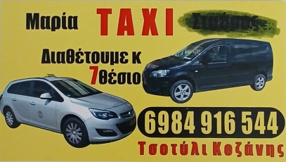 customer tabsΕπικοινωνίαΕπταθέσιο ταξί, 24ωρη Πανελλαδική εξυπηρέτησηΤαξί Κοζάνη- Ταξί ΓρεβενάΤαξί - TaxiΤουρισμόςΤσοτύλι 500 02ΚΟΖΑΝΗΜΑΚΕΔΟΝΙΑ 6984916544mariadelistogiannaki@gmail.com Το προτείνω (έχει προταθεί 0 φορές) ΦωτογραφίεςFacebook LikeShare on FacebookTweet Widget