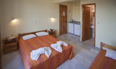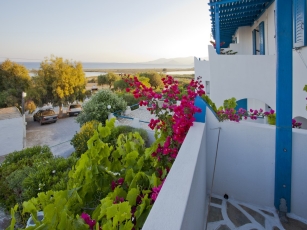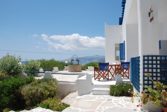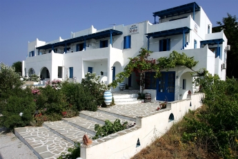 The Cycladic-style Pension offers accommodation with air conditioning, equipped with free Wi-Fi, satellite TV and refrigerator. The studios include a kitchenette with a hob. The units are decorated in bright colors and have wooden and iron beds and marble floors.