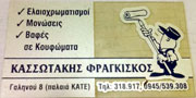 customer tabsΕπικοινωνίαΕργολάβος ελαιοχρωματισμών εσωτερικού - εξωτερικού χώρουΜονωτικές εργασίες - μονώσεις - θερμομονώσειςΣπατουλαρίσματα - βάψιμο κουφωμάτων - τεχνοτροπίεςΕλαιοχρωματισμοίΔόμηση - ΚατοικίαΓαληνού 8, Ηράκλειο, ΚρήτηΗΡΑΚΛΕΙΟ ΗΡΑΚΛΕΙΟΥΗΡΑΚΛΕΙΟΚΡΗΤΗ 2810318917 6945539308 what's up 6909742103 windkassotakisfrag@gmail.comwww.kassotakisfrank.4ty.gr Το προτείνω (έχει προταθεί 0 φορές) ΦωτογραφίεςFacebook LikeShare on FacebookTweet Widget