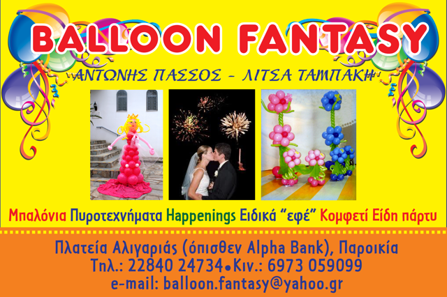 customer tabsΕπικοινωνίαΣτολισμοί εξωτερικών & εσωτερικών χώρων για γάμους - βαπτίσεις - εγκαίνια - partyΠυροτεχνήματα εσωτερικών & εξωτερικών χώρων, balloon fireΜπαλόνιαΠυροτεχνήματαΛοιπάΠαροικιά (κοντά στο λιμάνι, όπισθεν Alpha Bank), Πάρος, ΚυκλάδεςΠΑΡΟΣ ΚΥΚΛΑΔΩΝΚΥΚΛΑΔΕΣΝΗΣΙΑ ΑΙΓΑΙΟΥ ΠΕΛΑΓΟΥΣ 2284024734 6973059099balloon.fantasy@yahoo.grBalloon Fantasy Το προτείνω (έχει προταθεί 5 φορές) ΦωτογραφίεςFacebook LikeShare on FacebookTweet Widget