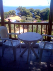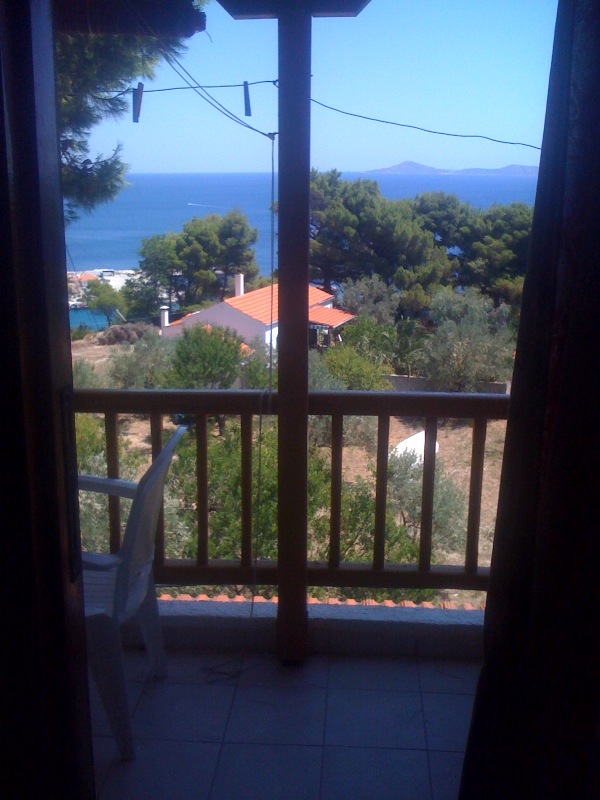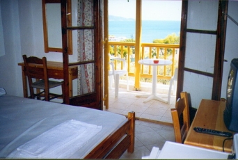 All rooms have magnificent view over the Aegean sea and/or the pine - tree forest. Prices vary depending on the period, from 30 euros (room per day) to 65 euros. This includes: kitchen facilities, fridge, tv, a/c, private bathroom, balcony, garden, playground, bbq. Pets accepted!