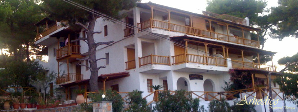 Escape to a paradise in earth... By visiting ARHODICO a traditional pension of 10 studios, located just 5 min walking distance from Patitiri -capital of Alonissos, next to the forest and nearby the sea.