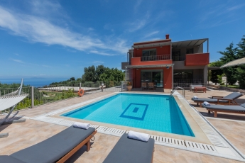 Dalas villas consists of two autonomous and spacious villas featuring handmade stone perimeter fencing and surrounding private area with a unique view of the Ionian Sea and the mountains. The swimming pool of each villa, the beautiful view and the lush gardens with fruit trees, olive trees, shrubs and flowers make it an ideal place to enjoy a unique vacation. It will be our pleasure to offer you a warm welcome to our beautiful island and the Kefalonian culture.
