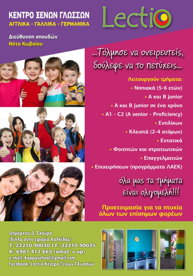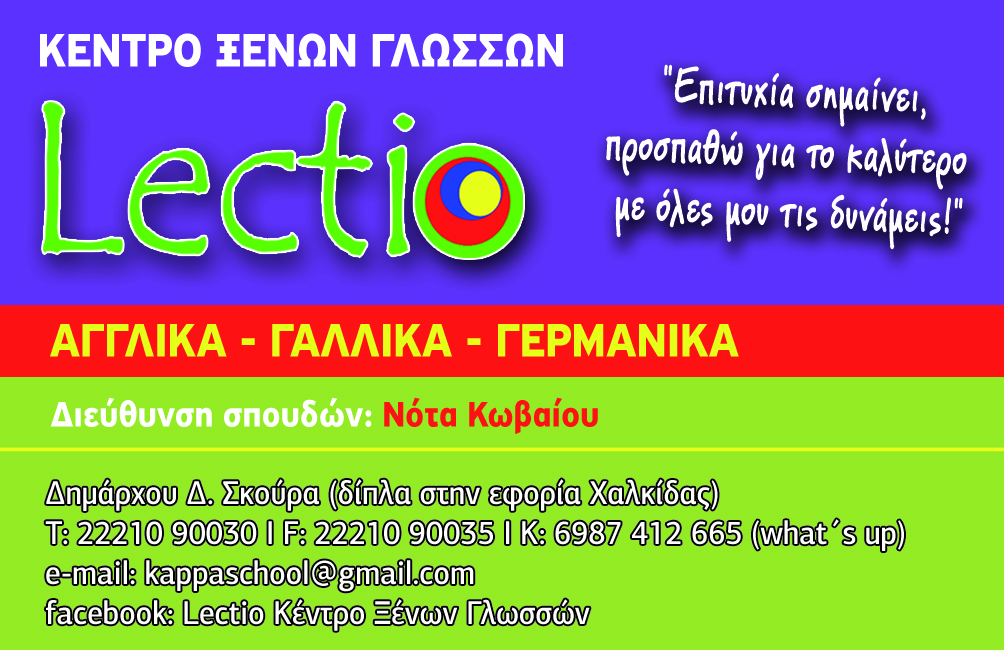 customer tabsΕπικοινωνίαΚέντρο Ξένων Γλωσσών Κέντρα Ξένων ΓλωσσώνΕκπαίδευσηΔημάρχου Δημητρίου Σκούρα, ΧαλκίδαΧΑΛΚΙΔΑ ΕΥΒΟΙΑΣΕΥΒΟΙΑΣΤΕΡΕΑ ΕΛΛΑΔΑ 2221090030 6987412665(whats up)2221090035kappaschool@gmail.comwww.lectio-lanquages.grLectio Languages Το προτείνω (έχει προταθεί 0 φορές) ΦωτογραφίεςFacebook LikeShare on FacebookTweet Widget