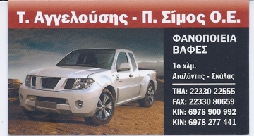 ΣΙΜΟΣ Π. & ΑΓΓΕΛΟΥΣΗΣ Τ. 1ο χλμ. Ε.Ο. Αταλάντης - Σκάλας, Αταλάντη, ΦθιώτιδαΦανοποιία και ΒαφέςAUTO - MOTO 2233022555